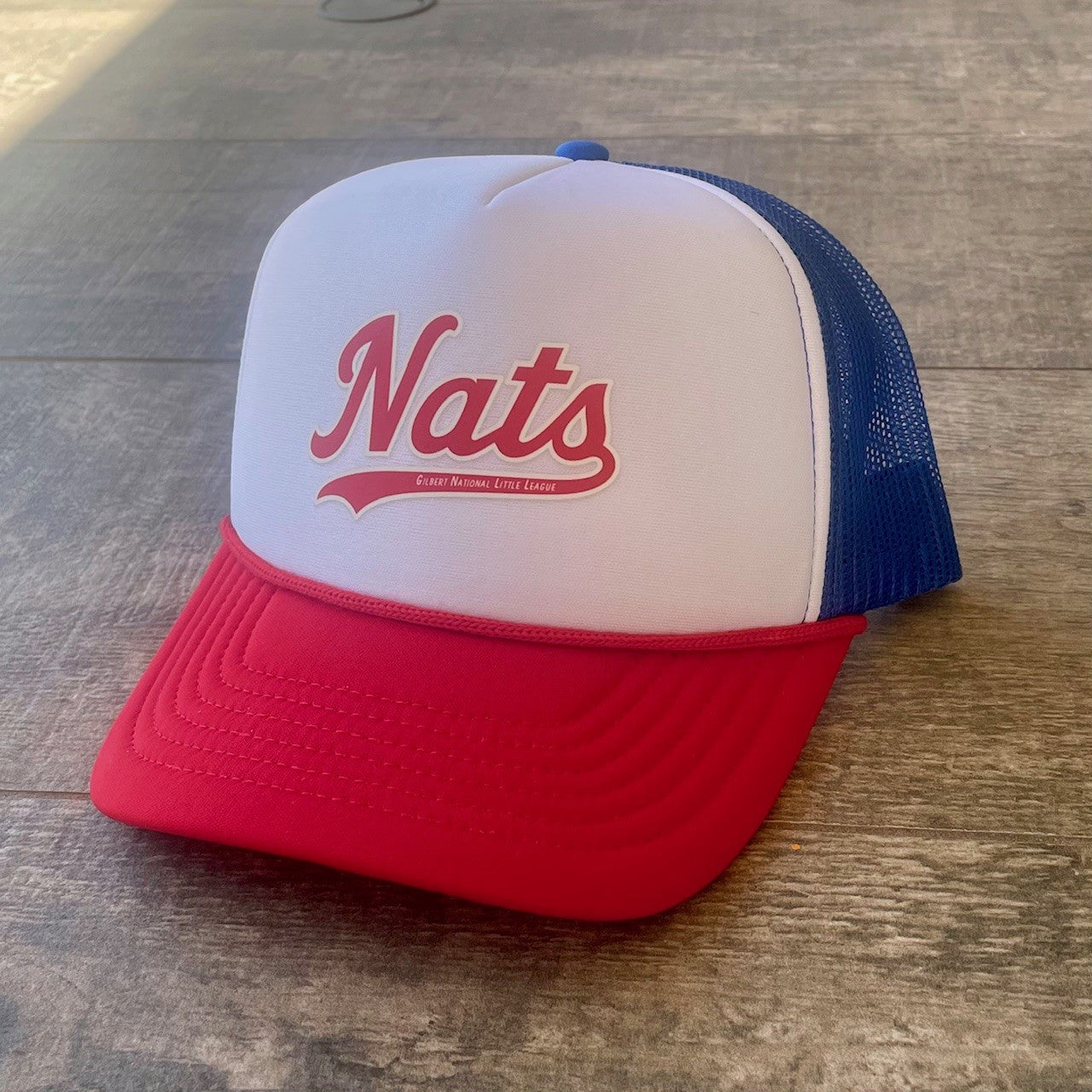 - Foam/mesh trucker hat with "Nats" printed on the front